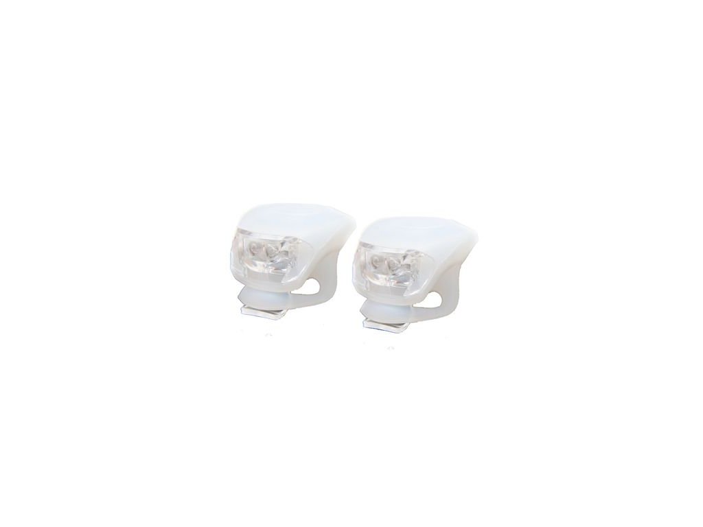 V balení sú 2 svetielka, jedno svieti na bielo a druhé na červeno. Sú v gumenom obale, môžete ich pripevniť na prednú vidlicu alebo na tyč pod sedadlo