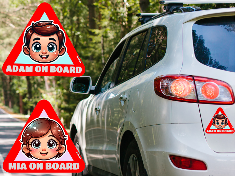 Vytvorte si svoju vlastnú personalizovanú Baby on Board nálepku. Bezpečnosť na cestách nikdy nebola taká štýlová a jedinečná!