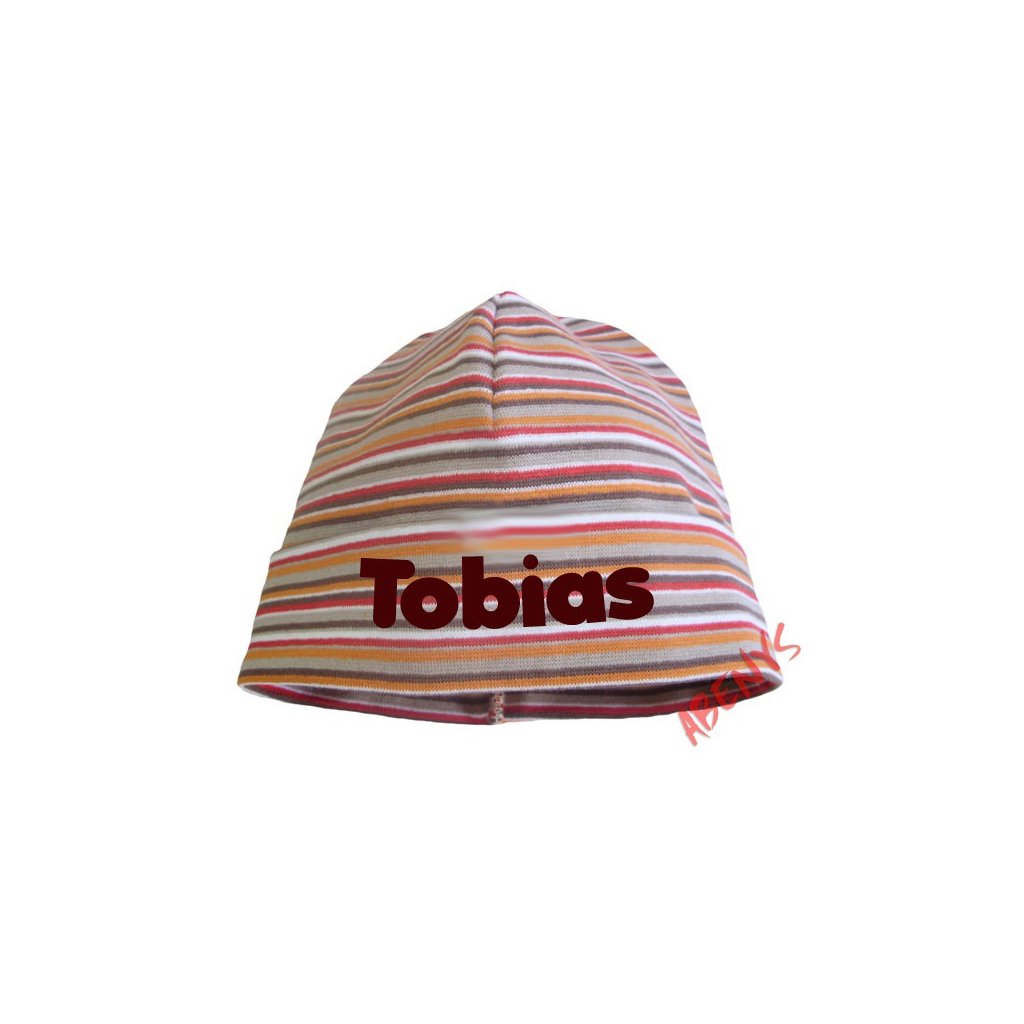 čiapka JUNIOR stripe s menom - hnedá