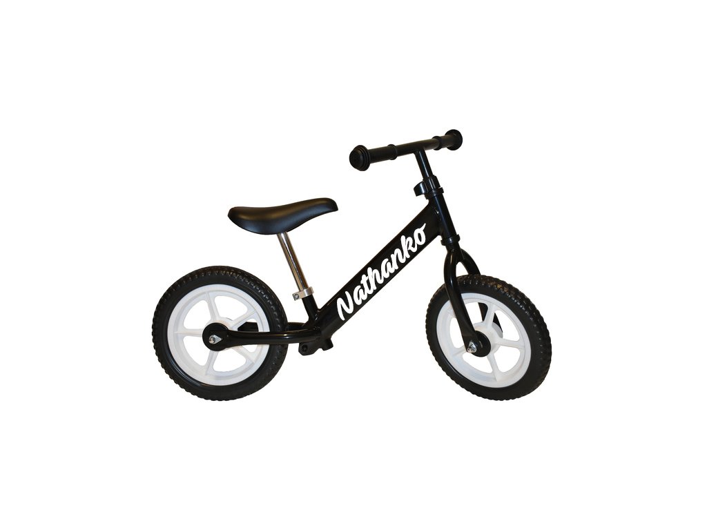 Moje odrážadlo s menom - čierne s bielymi kolesami