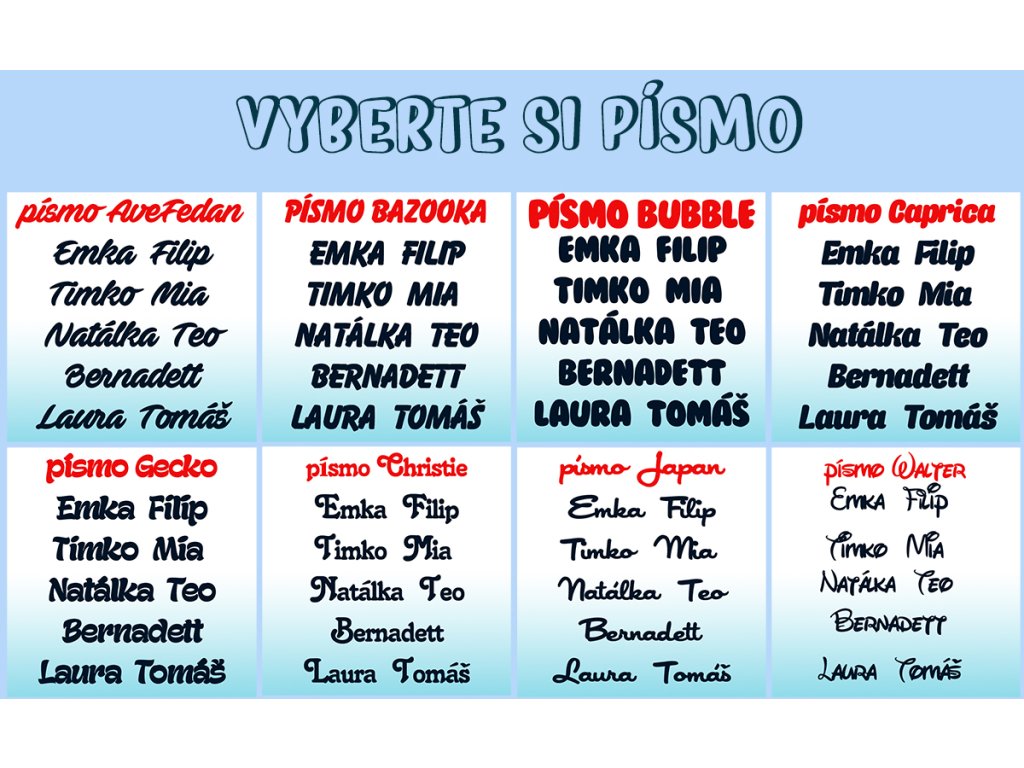 Z obrázka nižšie si vyberte typ písma (číslo):