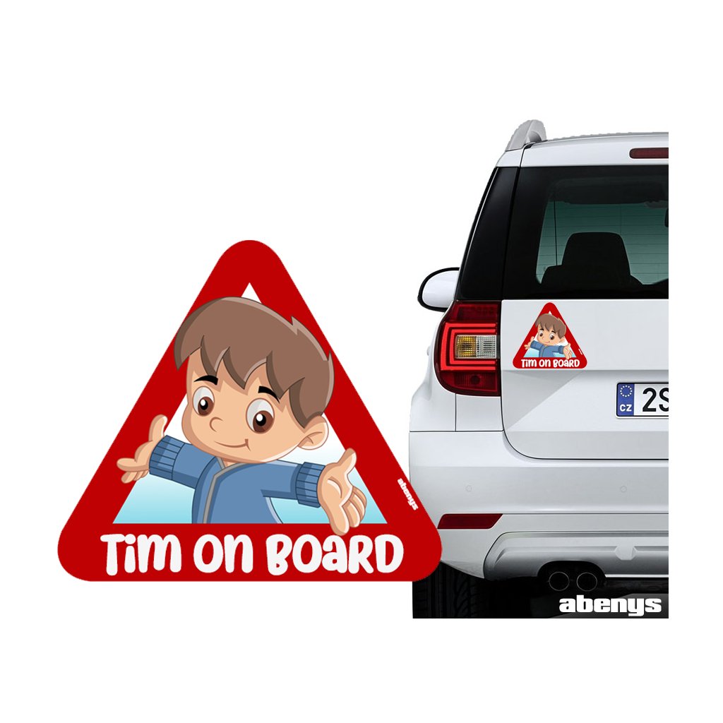 Nálepka na auto - s reflexným textom - postavička Tim