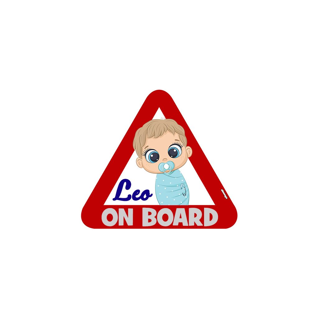Samolepka na auto - s reflexným textom - chlapček Leo