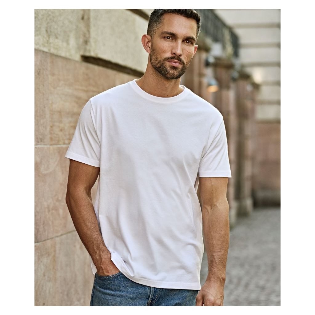 Tričko je vyrobené z ťažkého single jersey úpletu s gramážou 185 g/m², vďaka čomu je pevné, ale zároveň príjemné na nosenie. Použitá 100 % dvakrát predpraná česaná prstencová bavlna je mäkká na dotyk a drží tvar aj po opakovanom praní. Enzymatické pranie zvyšuje jemnosť materiálu a odolnosť farieb.