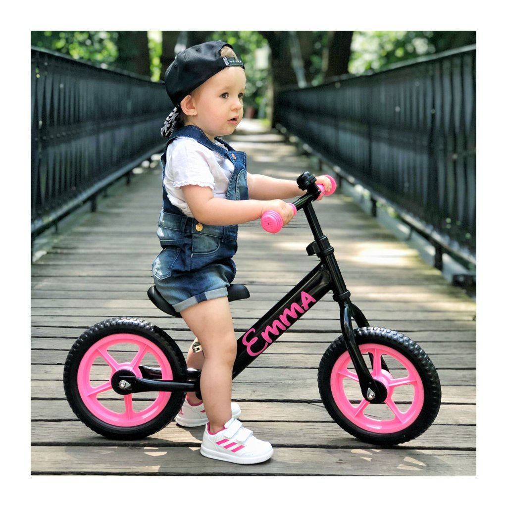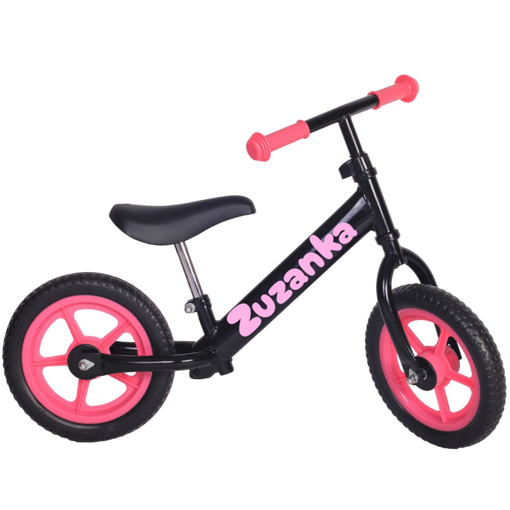 Ultraľahké odrážadlo s menom - čierne s ružovými kolesami