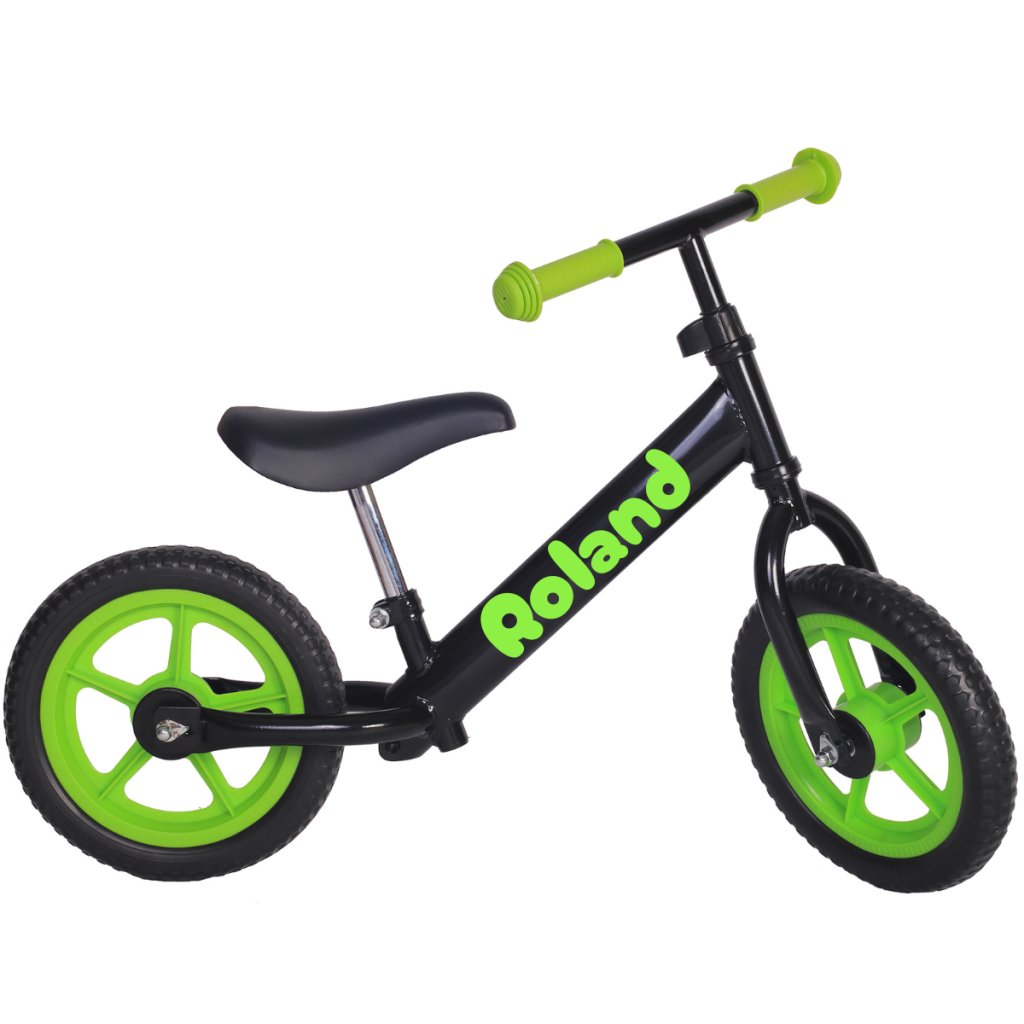Ultraľahké odrážadlo s menom - čierne so zelenými kolesami